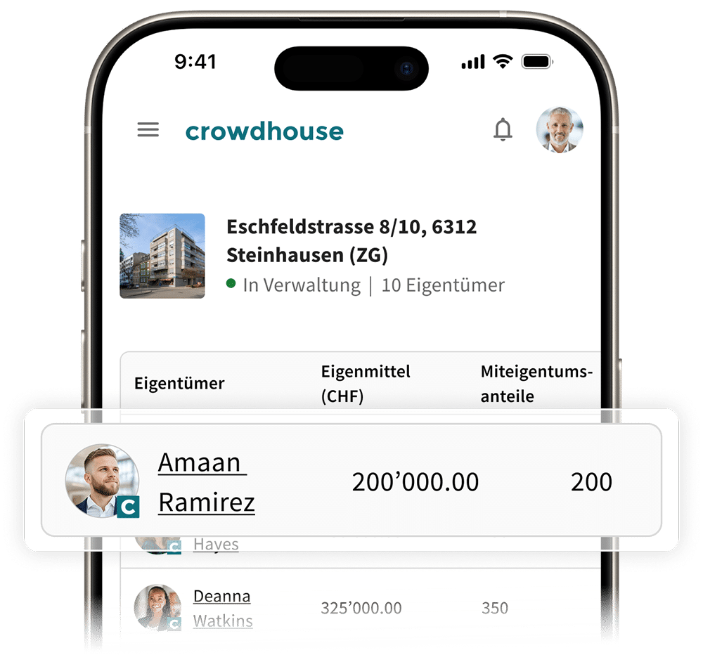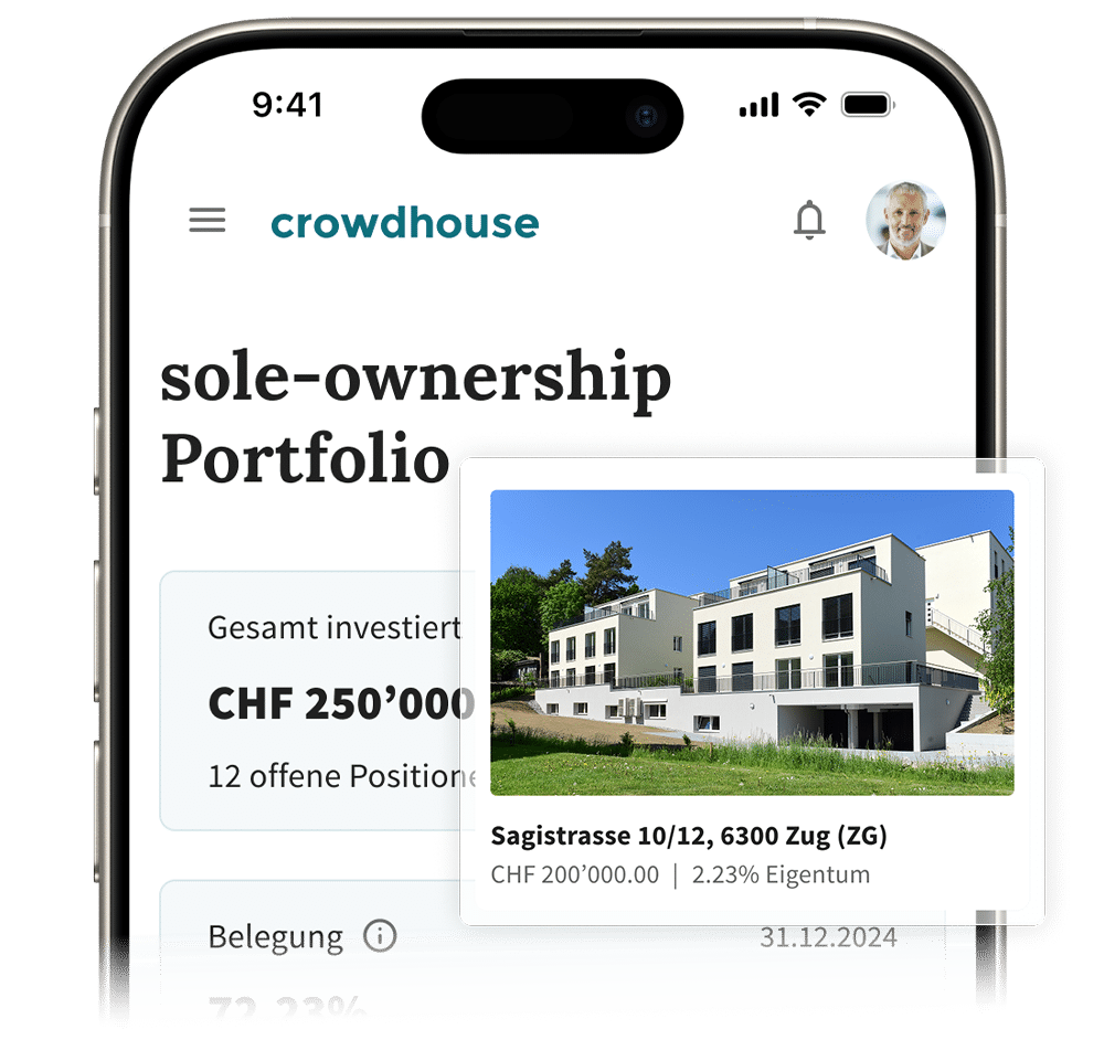 Der Klassiker von crowdhouse: Immobilienbesitz im Miteigentum – sicher, transparent und renditestark. Einstieg ab CHF 100’000.
