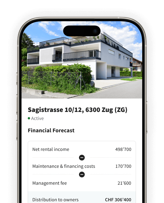 There are various forms of real estate co-ownership. In Switzerland, however, the most well-known form is offered by crowdhouse. In this model, multiple investors each acquire a share in an income-generating property. All investors are registered in the land register as co-owners according to the size of their share. The profit generated from ongoing rental income constitutes the return and is distributed proportionally to all co-owners on a monthly basis.
