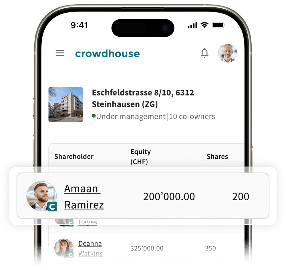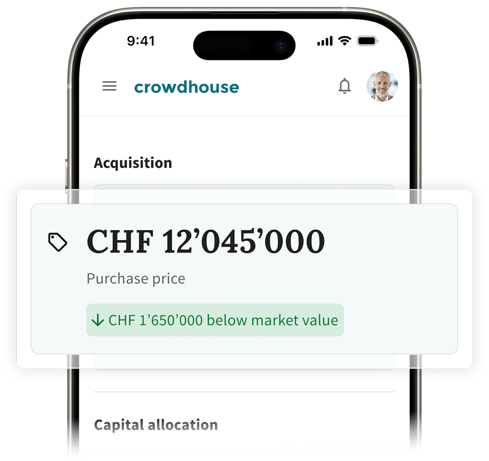 The classic from crowdhouse: co-owned real estate – the traditional way, with your own land register entry. Entry level from CHF 100,000.